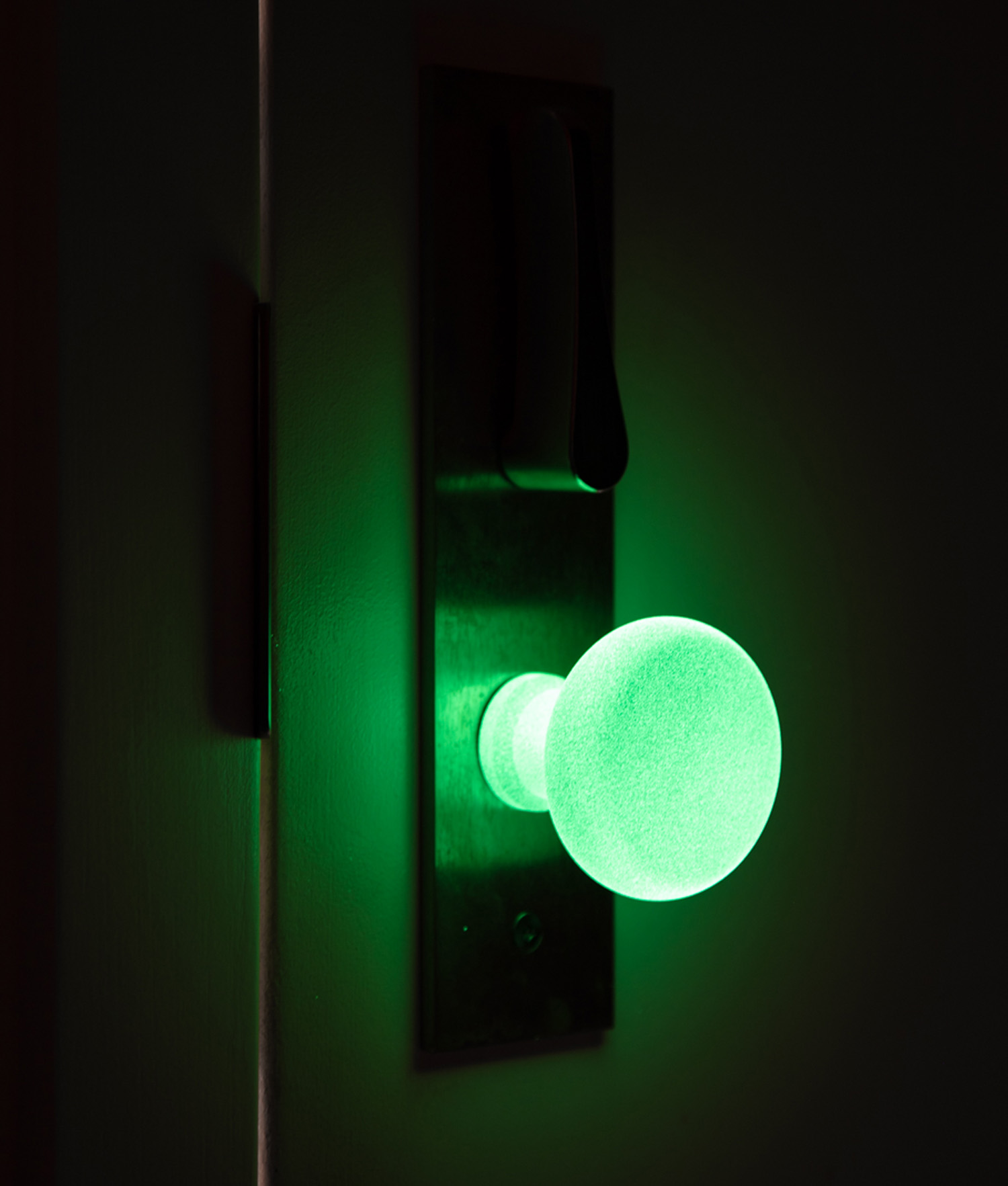 Developed to improve the safety of elderly occupants, SafeGlow is a phosphorescent coating applied to door hardware to enhance visibility in both dark and dimly lit areas